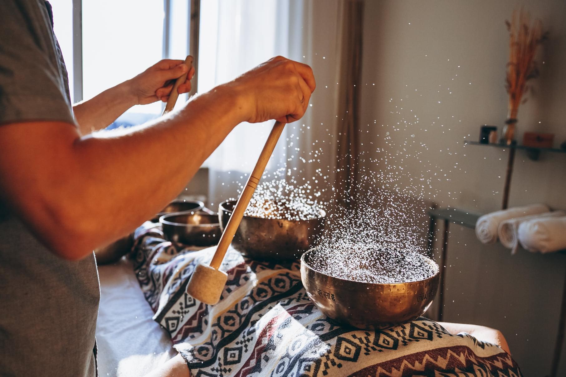 Une combinaison d'huile essentielles, de galets de quartz rose chauffés et la vibration des bols chauds pour un magnifique voyage sonore.