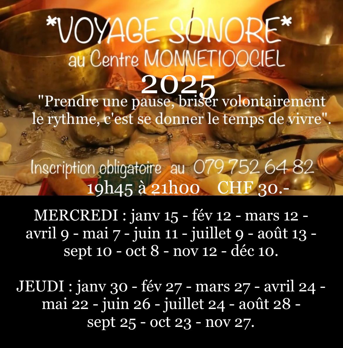 Paiement cash sur place | Inscription obligatoire au 079 752 64 82